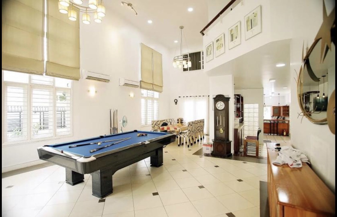 - Kết cấu: 1 trệt, 2 lầu, sân thượng, và hồ bơi phía sau.