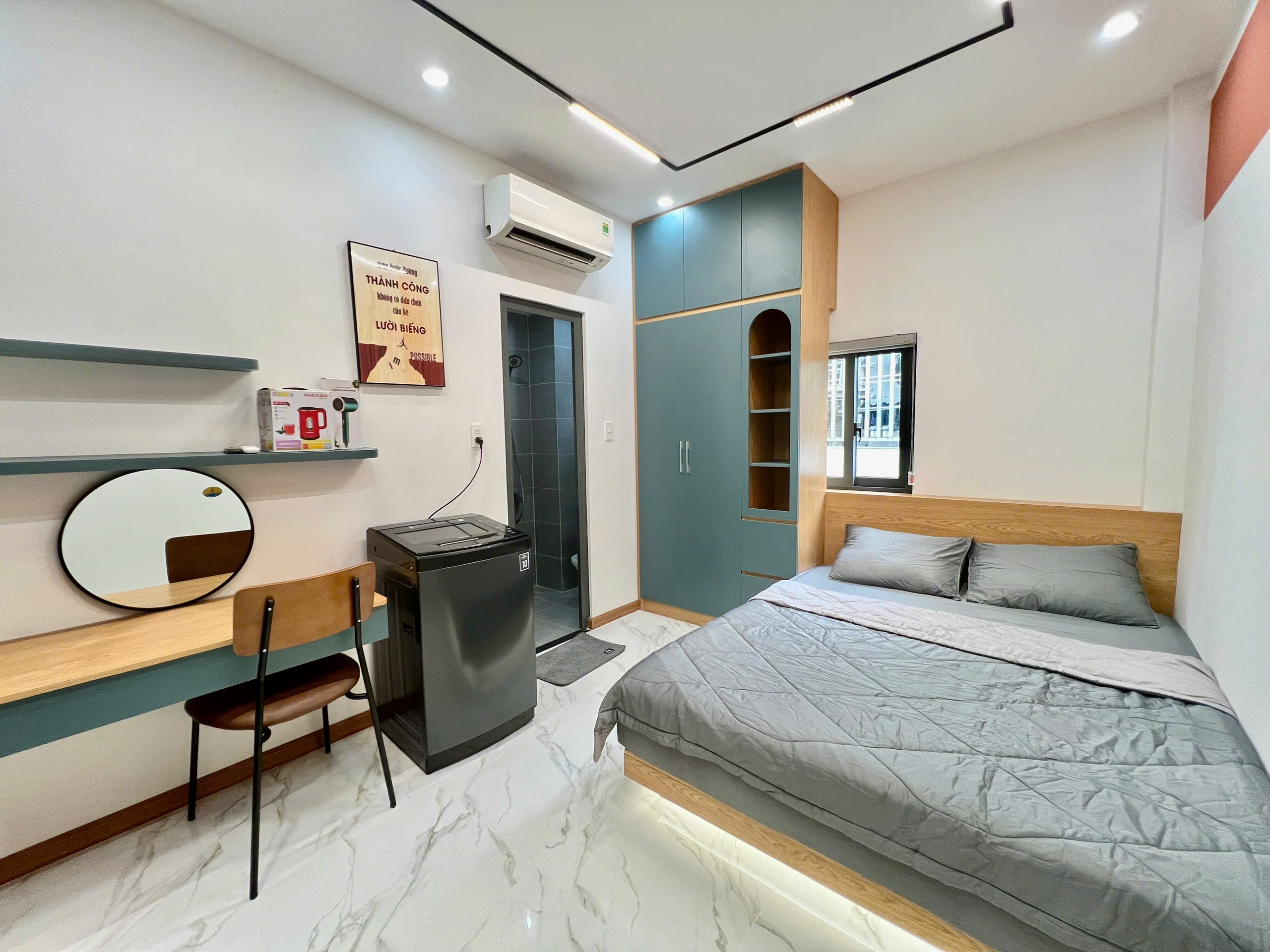 - Thiết kế hiện đại full nội thất và máy giặt riêng từng phòng